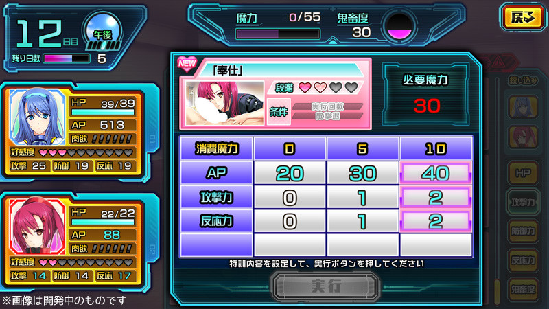 パラメーター変化表の中から魔力を消費して強化する項目を選択…