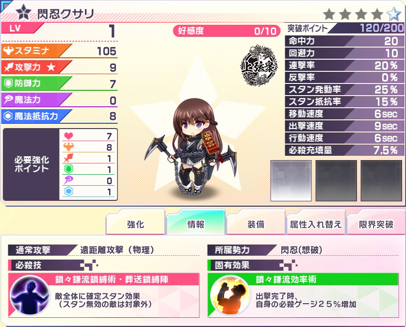 そして、今回のイベント報酬キャラ『閃忍クサリ』です。