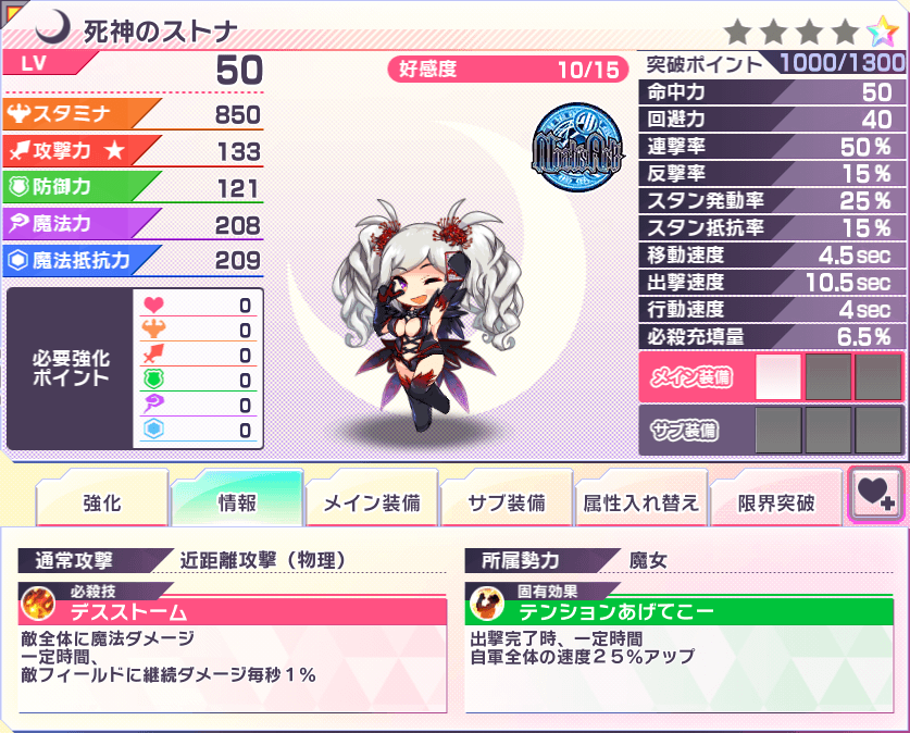 初期値、&LV50時パラメータ。必殺技&固有効果は画像を参照ください。