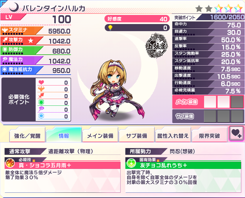 そして、イベント報酬キャラの「バレンタインツルコ(R)」の紹介です。