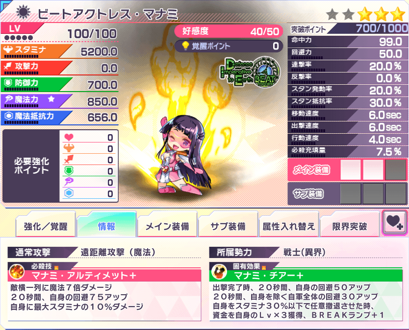 そして、今回のコラボイベントの報酬キャラ『ビートアクトレス・マナミ』です。