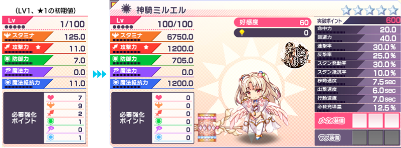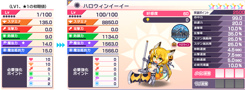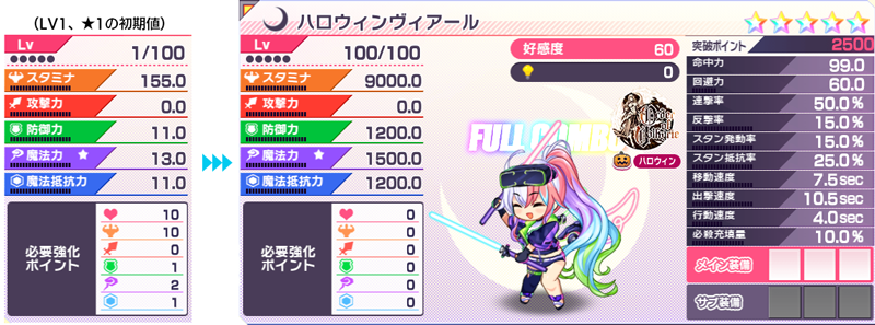 初期値&LV100★5でのパラメータはこちらになります。