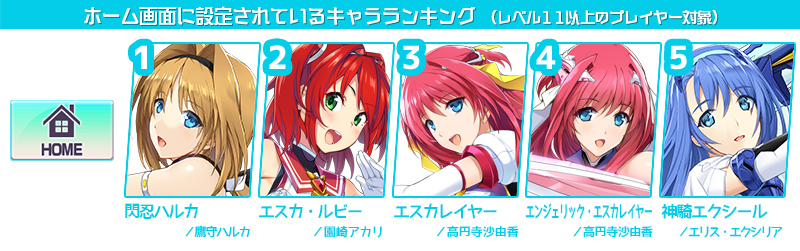 ○ホーム画面に設定されているキャラランキング(レベル11以上のプレイヤー対象)