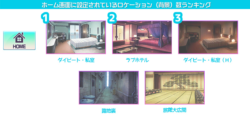 ホーム画面で設定されていたロケーション(背景)についても集計、上位5つをご紹介します。