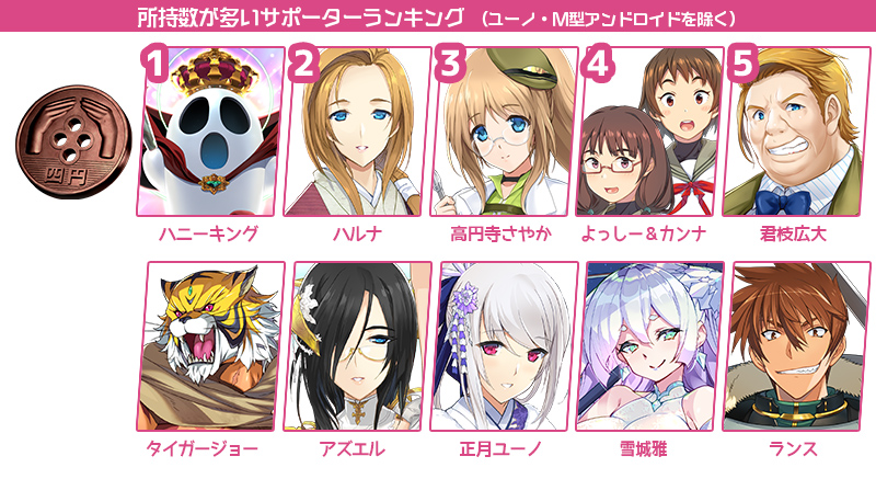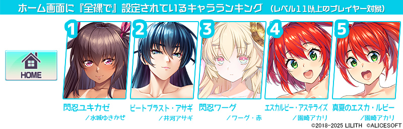 様々な理由でホーム画面に設定されているキャラ、上位5名は以上の通りです。