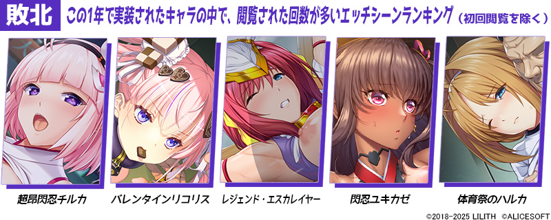 この1年で実装されたキャラで、初回閲覧を除いて閲覧された回数が多いエッチシーンランキングは