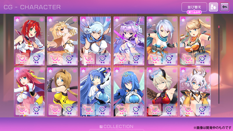 ○コレクション画面 キャラクターCGのお気に入り登録機能を追加