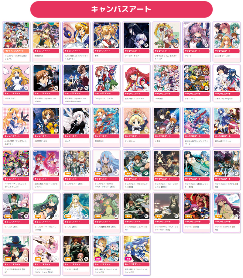 美麗な数々のイラストがハイクオリティなF10/F6サイズのキャンバスアートとして登場。