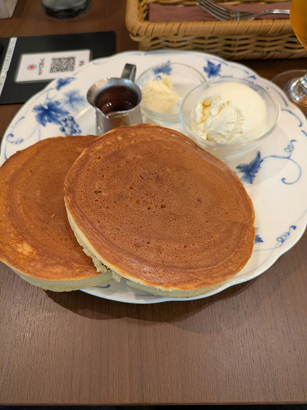 画像は昨年末、忘年会の帰りに三番街の喫茶店で頂いたホットケーキ。