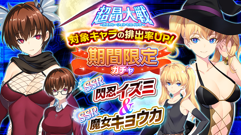 またイベントに合わせて、「閃忍イズミ&魔女キョウカ」の期間限定ガチャも復刻開催しております。