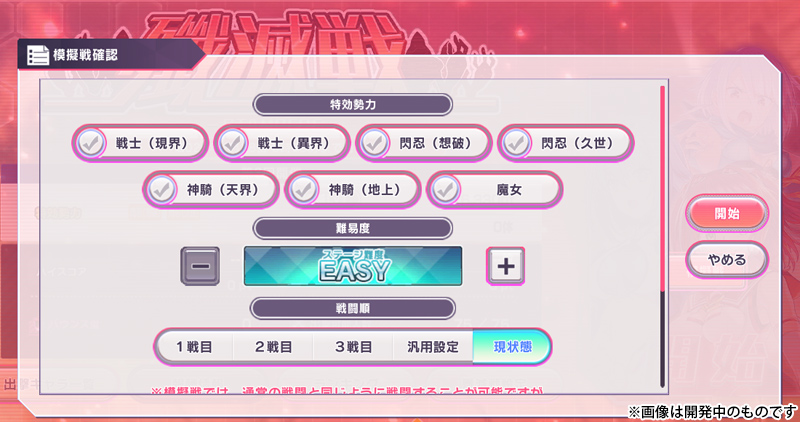 現在殲滅戦イベント期間中にのみプレイ可能な殲滅戦の模擬戦を、
