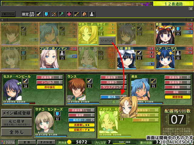 『ランス・クエスト』では、まず戦闘に参加するメンバーを選ぶよ。